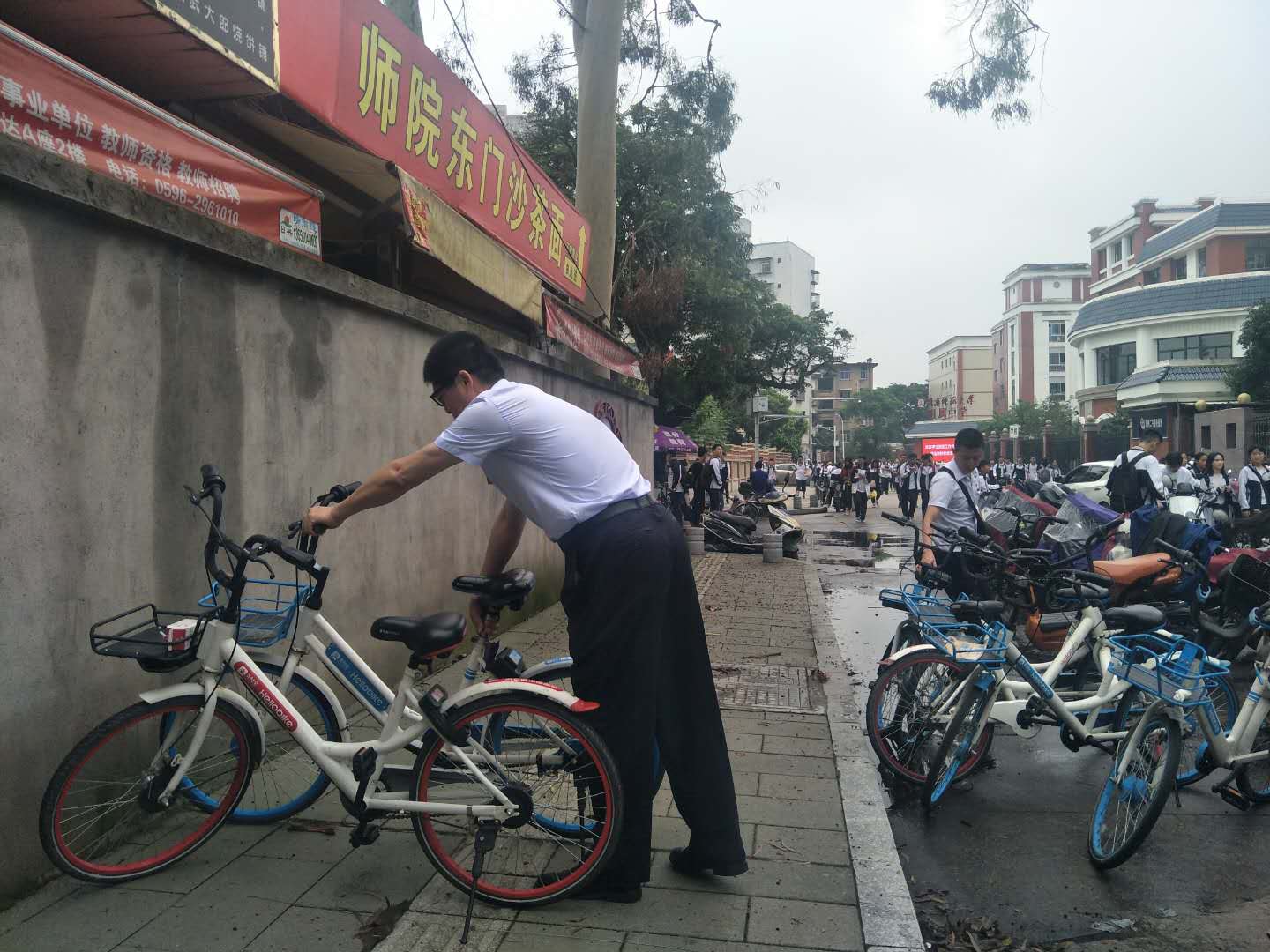 2019年6月12日,纪委监审处党支部在yl23455永利校园周边开展“整理共享单车,共建文明城市”主题党日活动,倡导市民呵护共享单车,文明绿色出行。