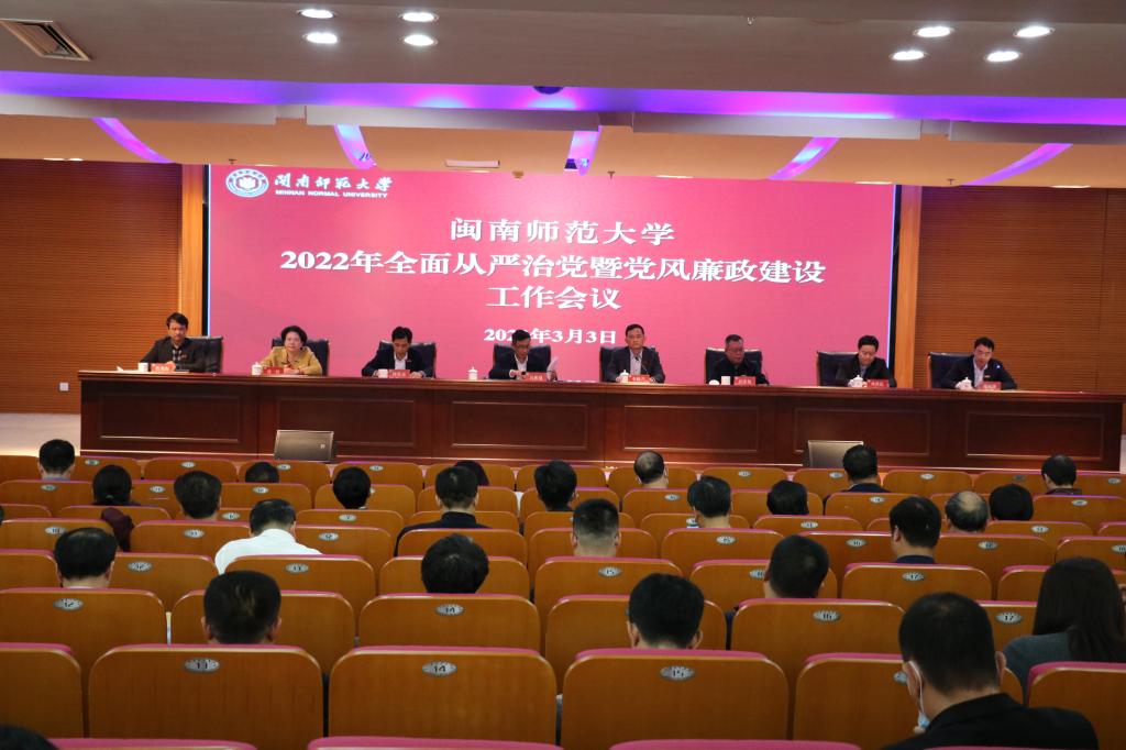 为认真贯彻落实十九届中央纪委六次全会和十一届省纪委二次全会精神,近日,我校在逸夫图书馆五楼报告厅召开2022年全面从严治党暨党风廉政建设工作会议,总结2021年全面从严治党工作,部署2022年重点工作任务。吴彬镪、李顺兴、钟发亮、肖庆伟、蒋一婷、林致远、张龙海、戴福康等全体在家校领导出席会议,全校中层干部、各相关单位党员和干部参加会议。会议由校长李顺兴主持。