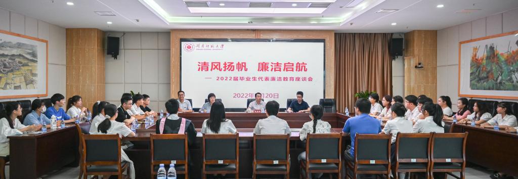6月20日,我校在科技楼会议室召开“清风扬帆 廉洁启航”2022届毕业生代表廉洁教育座谈会。校党委常委、纪委书记戴福康出席座谈会,并与各学院入职公务员、企事业单位、中小学教师及入围选调生的28名毕业生代表座谈。