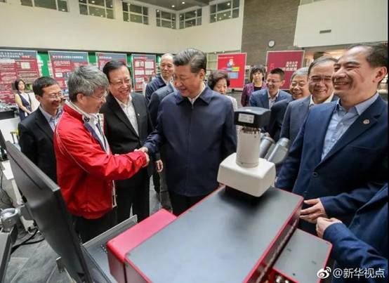 近年来,北京大学培养和汇聚了一批具有世界领先水平的科学家、科技领军人才和创新团队,科研综合实力、原始创新能力显著增强。在金光生命科学大楼一层大厅,展示了近年来北京大学在理科、工科、医科等领域的科研成果。习近平认真听取关于学校学科建设、人才队伍建设、科研创新能力提升等情况介绍,并仔细察看新一代干细胞技术、碳芯片技术、微型双光子显微成像系统等科研装置和实物模型。习近平对大家说,看了你们的成果展示,我为你们感到骄傲。创新是引领发展的第一动力,是国家综合国力和核心竞争力的最关键因素。重大科技创新成果是国之重器、国之利器,必须牢牢掌握在自己手上,必须依靠自力更生、自主创新。在这个问题上,我们一定要保持清醒。要继续深化科技体制改革,把人、财、物更多向科技创新一线倾斜,努力在关键共性技术、前沿引领技术、现代工程技术、颠覆性技术创新上取得更大突破,抢占科技创新制高点。高校是科技创新体系的重要组成部分,高校科研人员是我国科技创新的重要队伍。要加强学科之间的协同创新,加强对交叉学科群和科技攻关团队的支持,培养造就更多具有国际水平的科技人才和创新团队。