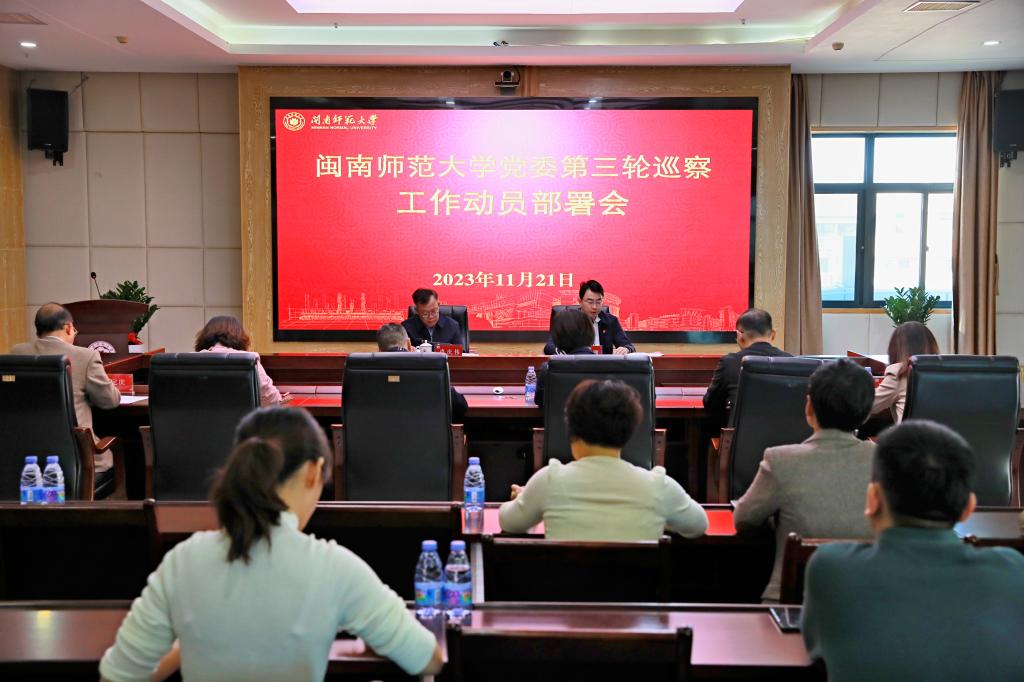 11月21日,校党委召开第三轮巡察工作动员部署会。校党委副书记肖庆伟出席并作动员讲话,校党委常委、纪委书记、巡察工作领导小组副组长戴福康传达学习2023年全国、全省巡视巡察工作会议精神并进行巡察工作部署,校党委组织部副部长(主持工作)陈慧燕宣布第三轮巡察工作组长授权任职和任务分工的决定。校巡察工作领导小组成员、二级学院党委书记及相关单位负责人、巡察组全体成员、本轮被巡察单位党政班子成员参加会议。